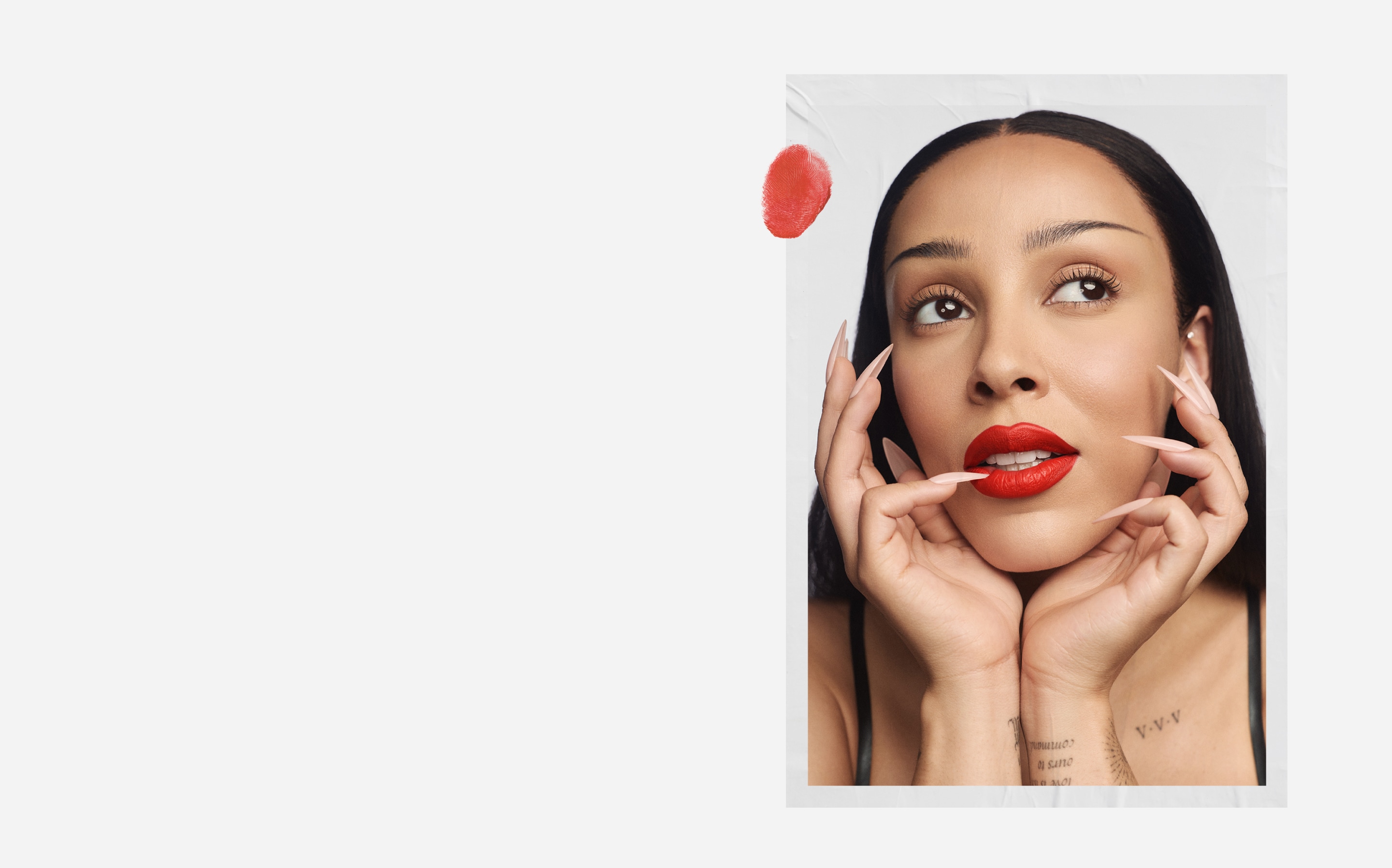 Where there’s smoke, there’s fire. Where there’s fire, there’s Lady Danger – a best-selling fiery red shade of M·A·Cximal Silky Matte Lipstick and Doja Cat signature.